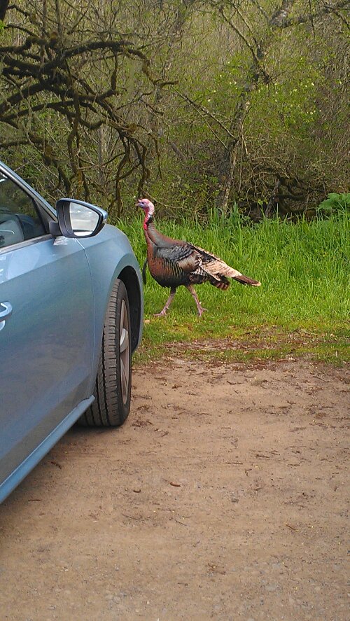 Other highlights included après-hike oysters, crabcake, and grilled asparagus @ Parkside Cafe, gorgeous mist-filled vistas of Marin County, and a wild turkey spotting in the parking lot: