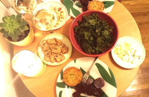 We enjoyed quite the spread of salmon burgers, crab cakes, manchego, rosemary crackers, beets, spanish almonds, and curry, paprika, and garlic salt flavored kale chips. All paired with a delicious Canadian white wine.