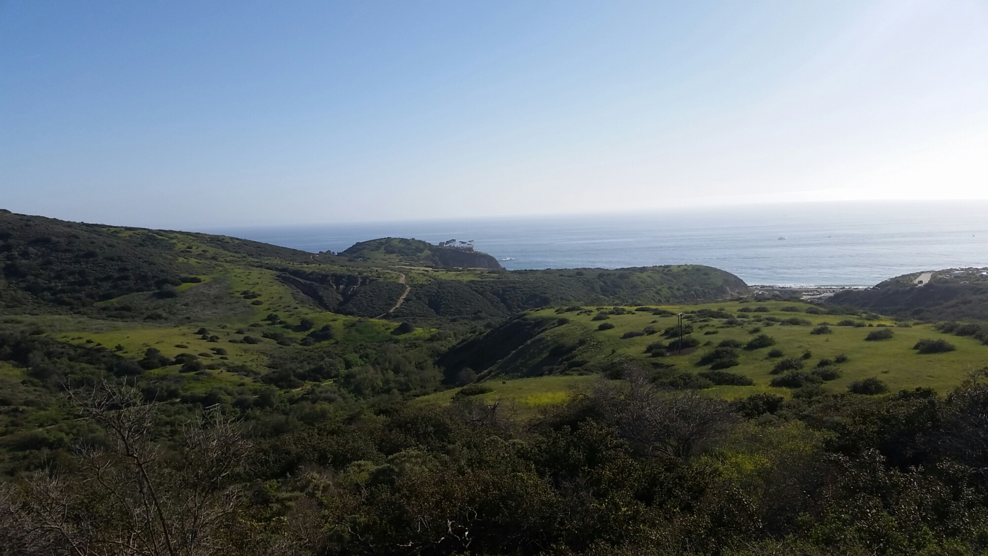 Hike El Moro Canyon at Crystal Cove State Park. The green route is a moderate 3.1 mile hike suitable for beginners that gives you a good sense of the park’s interior and some rewarding views: